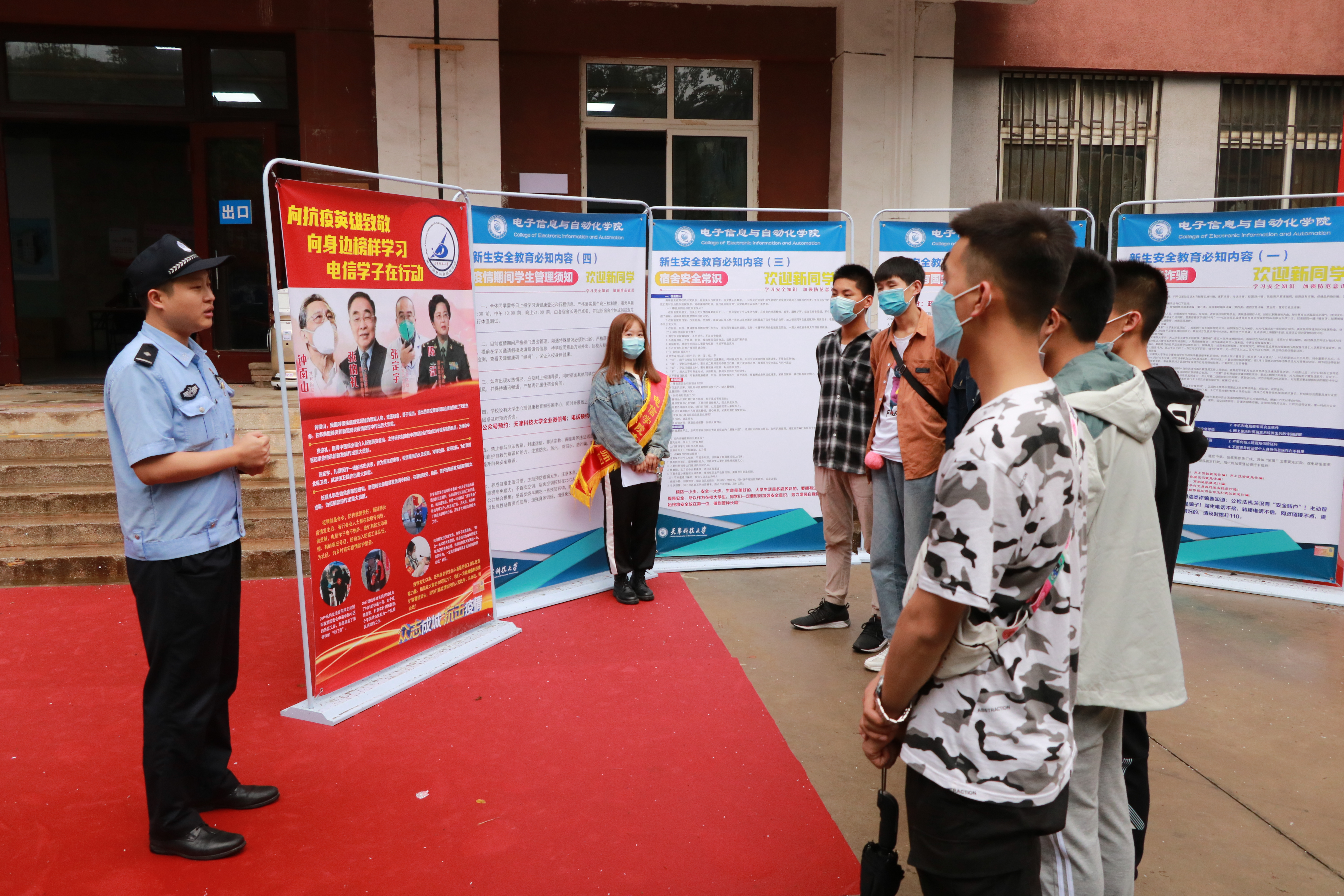 在现场,提升学生安全意识 报到现场,屏幕循环播放《天津科技大学应急处置工作方案》,让学生掌握学校应急处置流程,做好疫情防控常态化的准备。全讯网 邀请公安河西分局“河西力量”宣传队来院为2020级新生做入学安全教育。教育的部分环节设置在报到现场,以讲授+互动的模式呈现。新生报到现场,公安河西分局“河西力量”宣传员们以及全讯网导航 学生干部通过发放宣传品、现场答疑、互动交流的方式,揭秘常见的电信诈骗、校园贷等犯罪手法,使学生摸清套路,远离陷阱。报道现场还设置了抽题区,通过问答互动,充分利用新生报到的等候时间,进一步强化新生的安全意识。